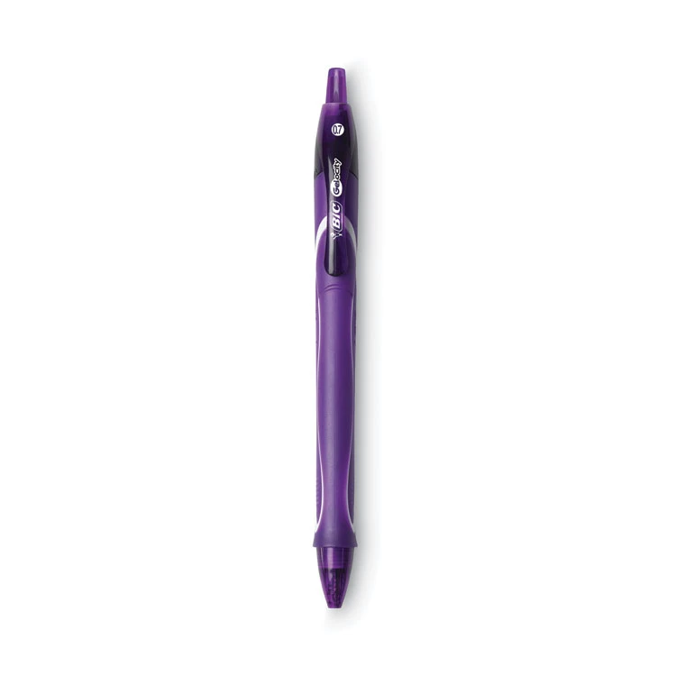 Bic Gel-ocity Quick Dry Gel Pen, Retractable, Medium 0.7 Mm, Purple Ink, Purple Barrel, Dozen