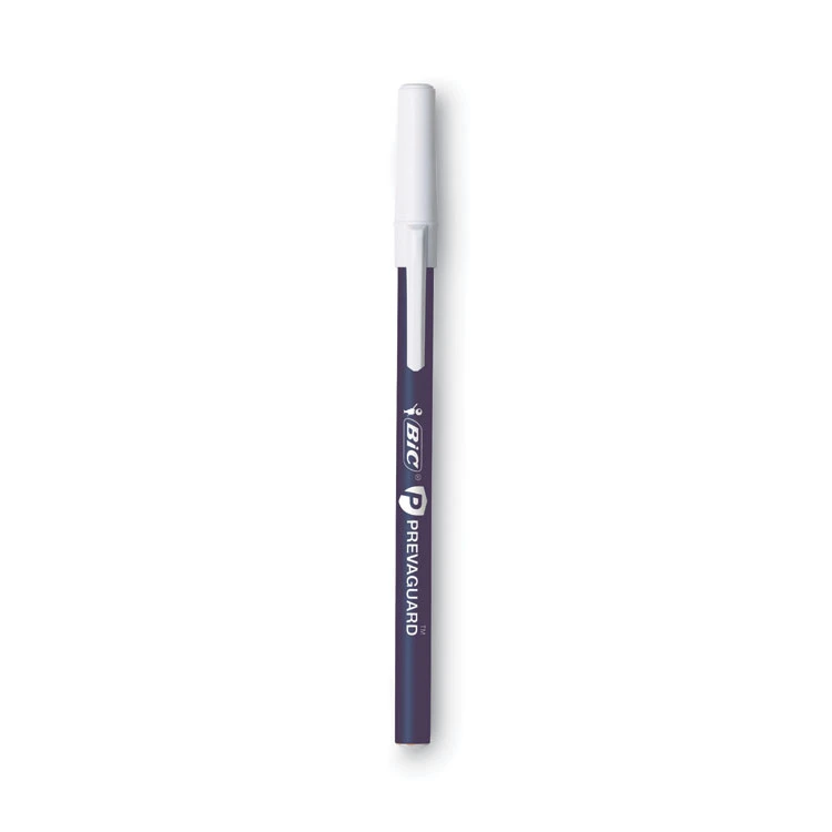 BIC Prevaguard Round Stic Ballpoint Pen contains an antimicrobial agent incorporated into the plastic that protects the pen itself by suppressing the growth of bacteria, algae, fungus, and mildew. These products protect the pens themselves and do not protect users or others from disease-causing bacteria, viruses, or germs. The antimicrobial agent should last the lifetime of the penās plastic unless the plastic is destroyed. Along with the antimicrobial agent on the pen, the Round Stic Pen is the BIC product you know and love. This pen also features a medium 1 mm ballpoint that delivers smooth writing to create vivid, highly visible lines ideal for note-taking, drafting, doodling, and other writing activities. PrevaGuard is a registered trademark of Koozie Group.