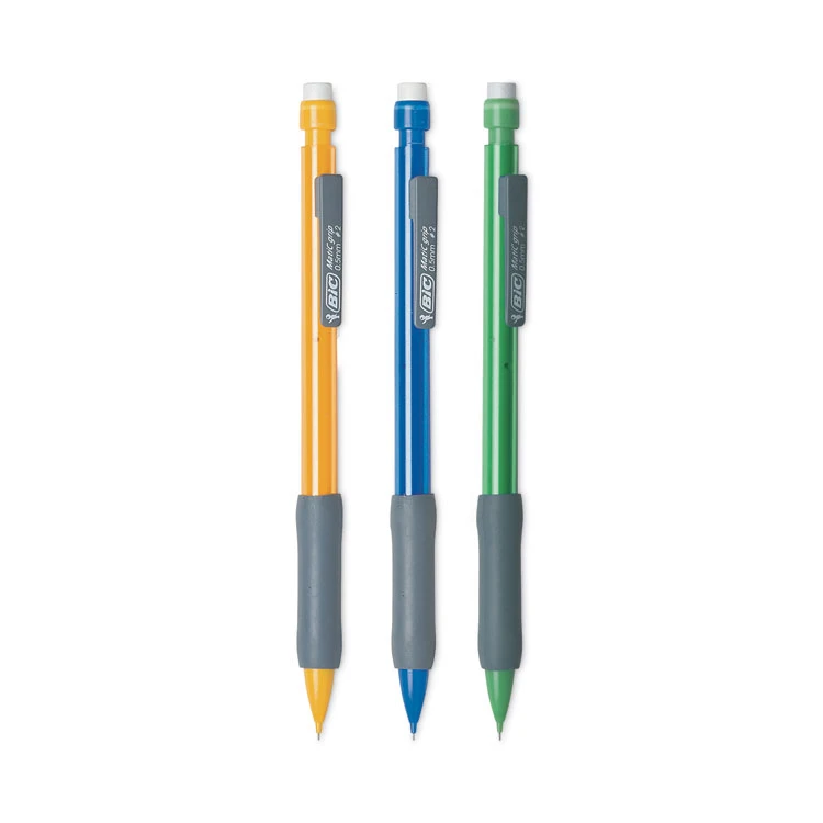 Enjoy a comfortable writing experience with the BIC Xtra-Comfort Mechanical Pencil. Featuring a soft grip that provides better writing control and comfort, this mechanical pencil comes with smooth-writing #2 lead that does not smudge and erases cleanly. The lead advances quickly and easily with a simple click, eliminating the need for sharpening. Ideal for standardized tests, each pencil comes with three #2 leads that create accurate, crisp marks. Vibrant barrel colors, BIC Xtra-Comfort Mechanical Pencils are great for school, home, or the office.