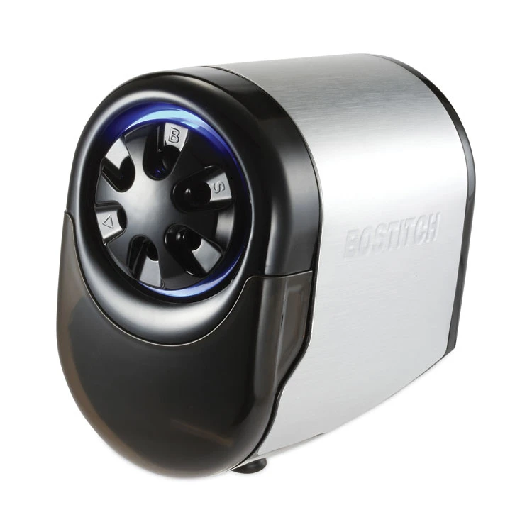 Bostitch QuietSharp Glow Classroom Electric Pencil Sharpener, AC-Powered, 6.13 X 10.69 X 9, Silver/Black