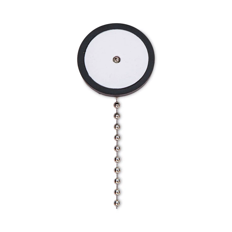 Antimicrobial barrel to resist buildup for sanitary use in high traffic areas. Can be affixed to a counter with the sticky tape. Chain can be extended about 24 inches. Replacement pens can be purchased separately.