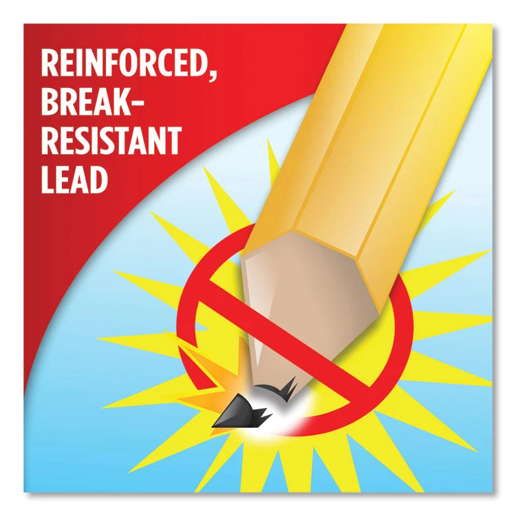 Get more out of your pencil with Paper Mate EverStrong #2 pencils! These woodcase pencils feature reinforced, break-resistant lead when writing, so they need less sharpening and last longer. The wooden pencils also feature 100% latex-free erasers.