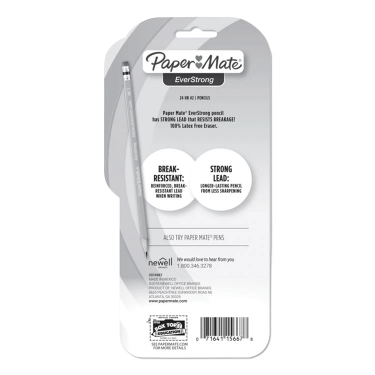 Get more out of your pencil with Paper Mate EverStrong #2 pencils! These woodcase pencils feature reinforced, break-resistant lead when writing, so they need less sharpening and last longer. The wooden pencils also feature 100% latex-free erasers.