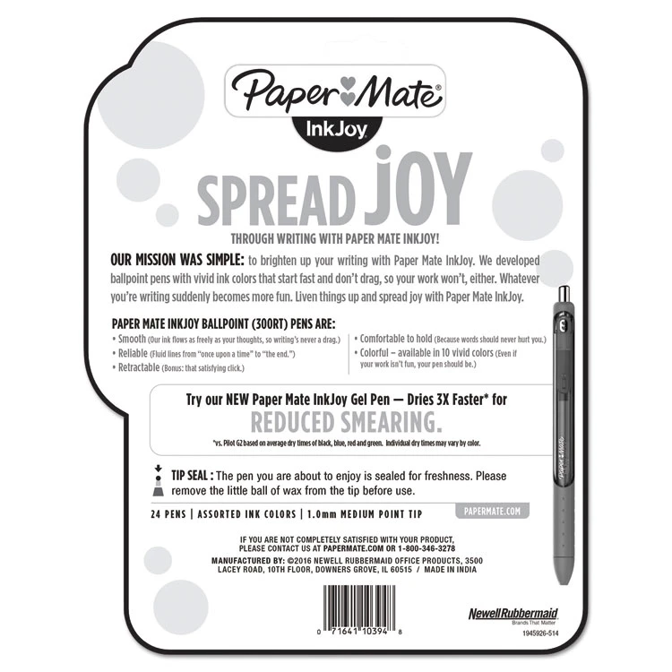 SKU: PAP1945926 Category: Pens Tags: 24/Pack, Assorted Ink and Barrel Colors, InkJoy 300 RT Ballpoint Pen Retractable, Medium 1 mm