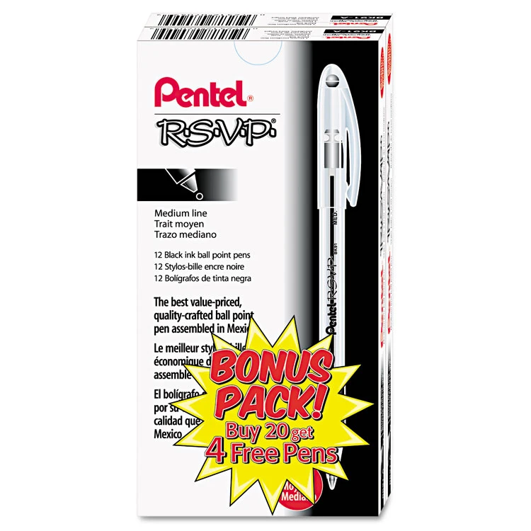 Be the first to review “Pentel R.S.V.P. Ballpoint Pen Value Pack, Stick, Medium 1 Mm, Black Ink, Clear/Black Barrel, 24/Pack” Cancel reply