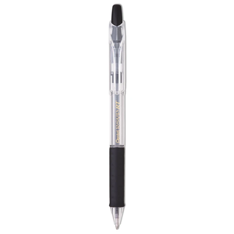 Pentel R.S.V.P. RT Ballpoint Pen, Retractable, Medium 1 Mm, Black Ink, Clear Barrel, Dozen