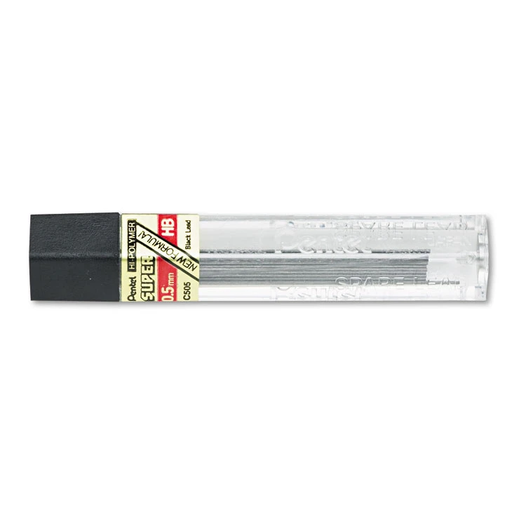 Pentel Super Hi-Polymer Lead Refills, 0.5 Mm, HB, Black, 12/Tube