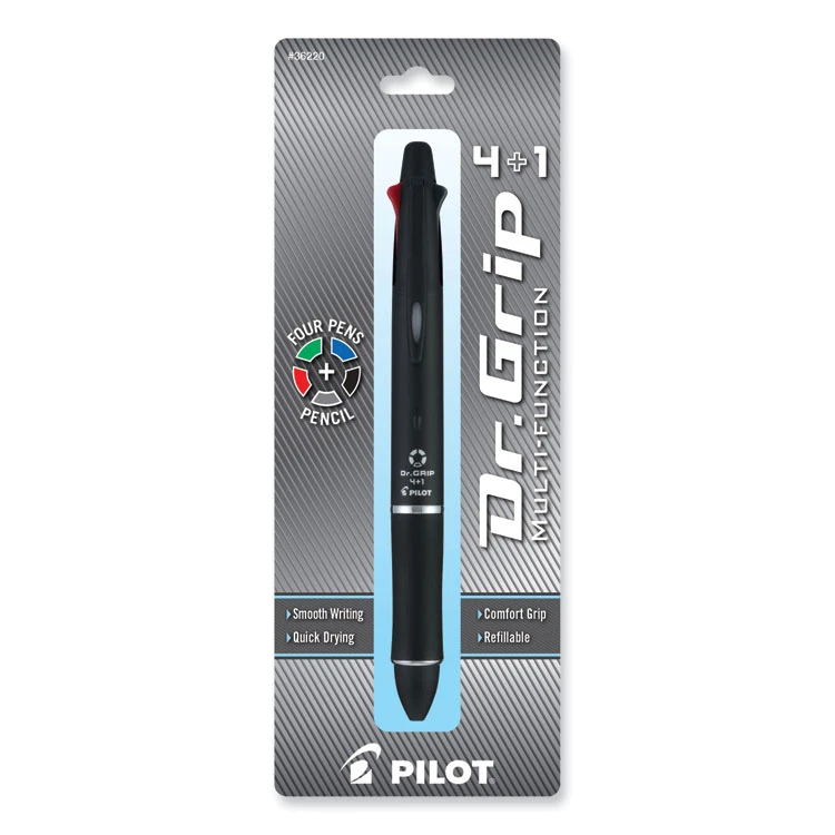 Pilot Dr. Grip 4 + 1 Multi-Color Ballpoint Pen/Pencil, Retractable, 0.7 Mm Pen/0.5mm Pencil, Black/Blue/Green/Red Ink, Black Barrel