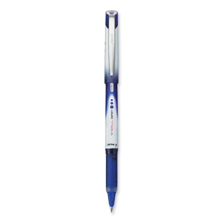 Pilot VBall Grip Liquid Ink Roller Ball Pen, Stick, Extra-Fine 0.5 Mm, Blue Ink, Blue/White Barrel, Dozen