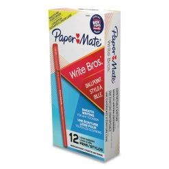 Paper Mate Write Bros. Ballpoint Pen, Stick, Medium 1 Mm, Red Ink, Red Barrel, Dozen