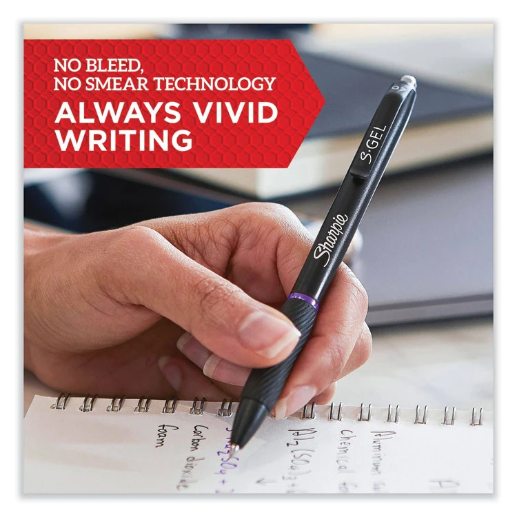 Sharpie® S-Gel™ S-Gel High-Performance Gel Pen, Retractable, Medium 0.7 Mm, Purple Ink, Black Barrel, Dozen