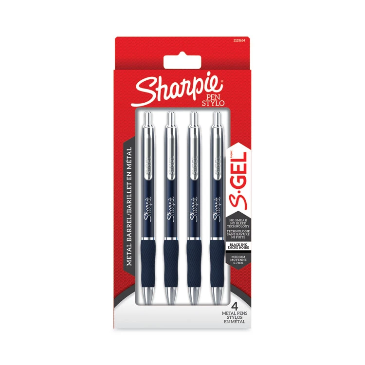 Sharpie® S-Gel™ S-Gel Premium Metal Barrel Gel Pen, Retractable, Medium 0.7 Mm, Black Ink, Blue Barrel, 4/Pack