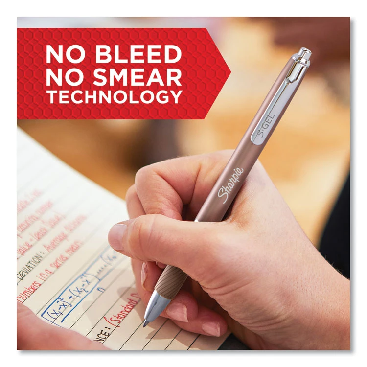 The power of Sharpie is now in a metal gel pen. This Sharpie S-Gel is a high performance gel pen with a sleek metal barrel and professional look that’s sure to stand out. With no-smear, no-bleed technology and bold, unrivaled ink, this Sharpie pen delivers always-vivid writing. The contoured rubber grip makes for a comfortable writing experience during any writing task—perfect for homes, schools, or offices.