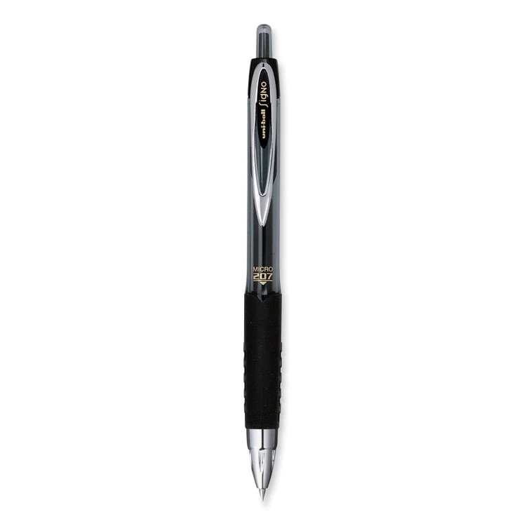 Uniball® Signo 207 Gel Pen, Retractable, Micro 0.5 Mm, Black Ink, Smoke/Black Barrel, Dozen