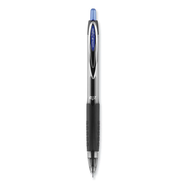 Uniball® Signo 207 Needle Point Gel Pen, Retractable, Medium 0.7 Mm, Blue Ink, Black Barrel, Dozen