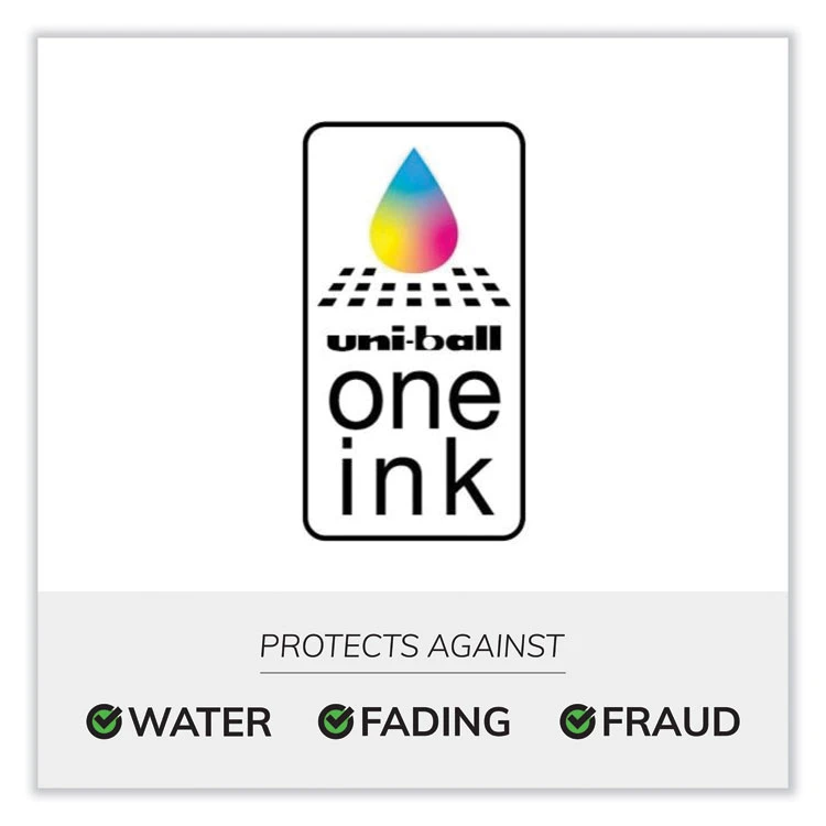 Experience the next stage of ink technology innovation with uniONE Retractable Gel Pens. The revolutionary gel ink is specially formulated with large pigments that do not absorb into the paper. This results in writing and drawing that is darker, brighter and ultra vivid. Quick drying gel pens resist smudging, smearing and bleeding, making them ideal for crisp and easy to read notes and assignments. A 0.7 mm medium tip strikes the perfect balance between bold and detailed lines. The sleek white barrel with integrated anti-slip grip makes this pen a stylish writing tool. Additionally, the functional wire clip indicates the gel ink color, as well as opens wide for easy attachment to papers, notebooks or folders. uni-ball® uniONE gel ink delivers superior writing performance whether at school, at home or at work.