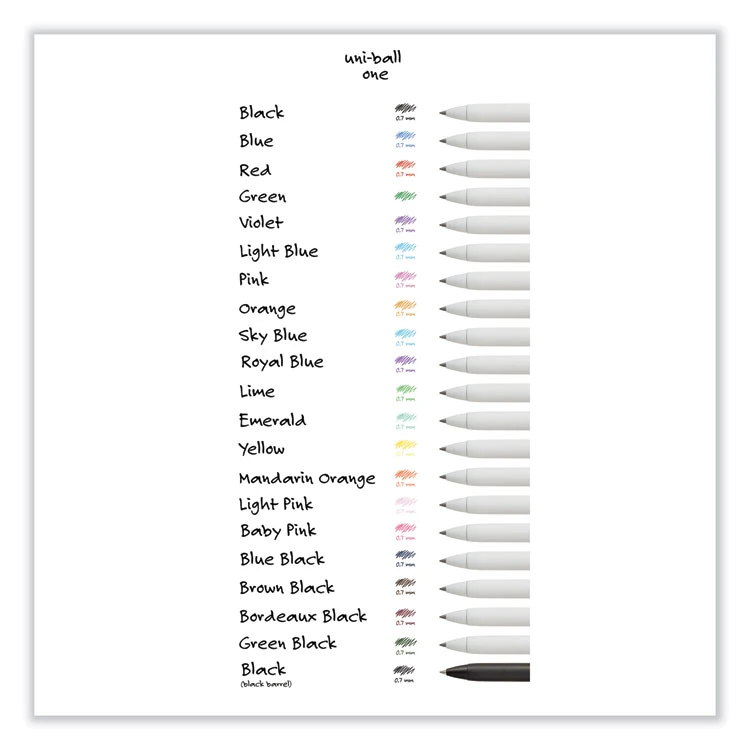 SKU: UBC70309 Category: Pens Tags: 8/Pack, Inspirational Ink-Color Assortment, Medium 0.7 mm, Retractable, UniONE Gel Pen, White Barrel