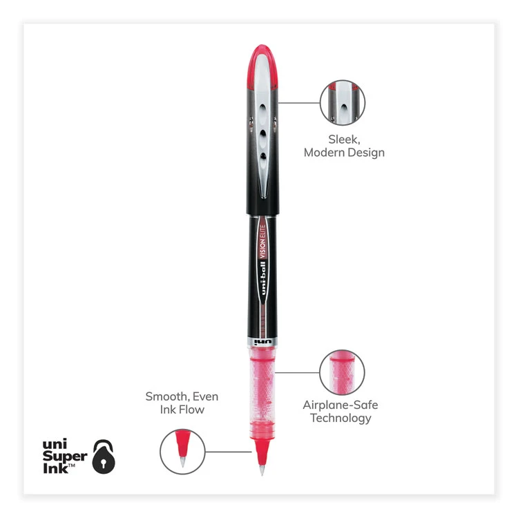 SKU: UBC69022 Category: Pens Tags: Black/Red Barrel, Extra-Fine 0.5 mm, Red Ink, Stick, VISION ELITE Roller Ball Pen