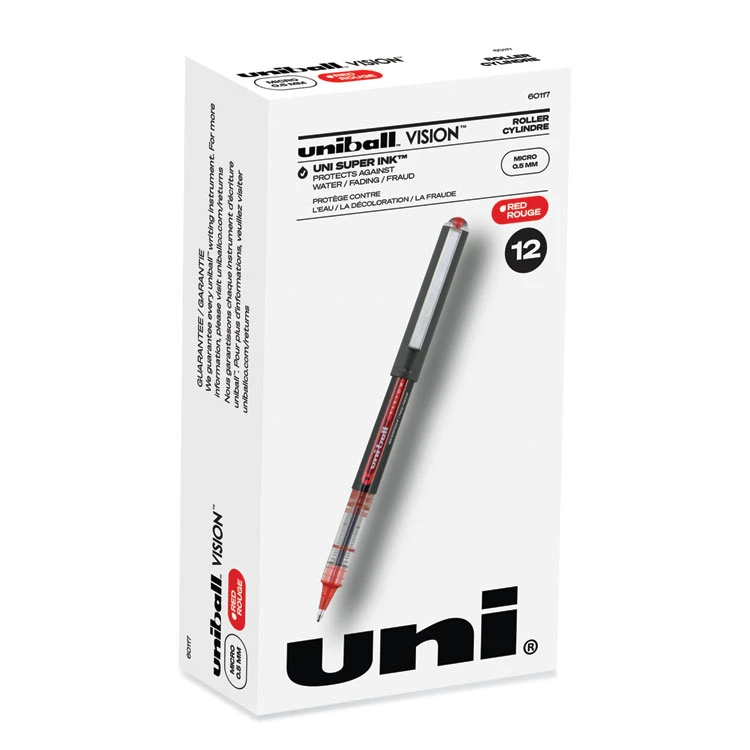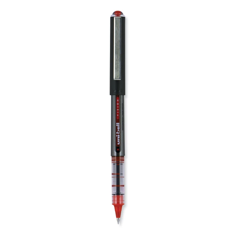 Make your everyday writing easy with the effortless and dependable performance of Vision Rollerball Pens from uni-ball featuring strong, long lasting tips. Capped roller pens deliver an even liquid ink lay-down for reliably smooth, vivid lines and a rich color for improved clarity and readability. Great for all writing tasks from taking notes to record keeping with archival quality, acid free roller ink. Innovative uni Super Ink technology forms an indestructible bond with the paper to minimize the risk of check washing or document fraud, while also protecting from water and fading. The exclusive Uni-Flow Ink System ensures a consistent, delightfully fluid writing experience, and a translucent window ensures that you don’t run out of ink unexpectedly. Enjoy beautiful clean lines and give all of your ideas a burst of brilliant color with this classic style rollerball pen.