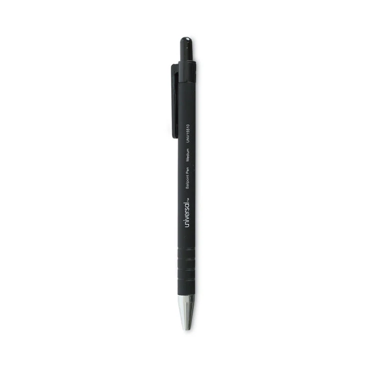 Universal™ Retractable Ballpoint Pen features a rubberized barrel with ringed, no-slip grip that’s easy to hold. The stable and rubberized barrel provides exceptional comfort and a secure grip for precision writing. The quick-drying, water-resistant ink won’t smear or run, keeping your documents safe and legible. The retractable pen protects pockets and purses by keeping ink inside the pen when closed.