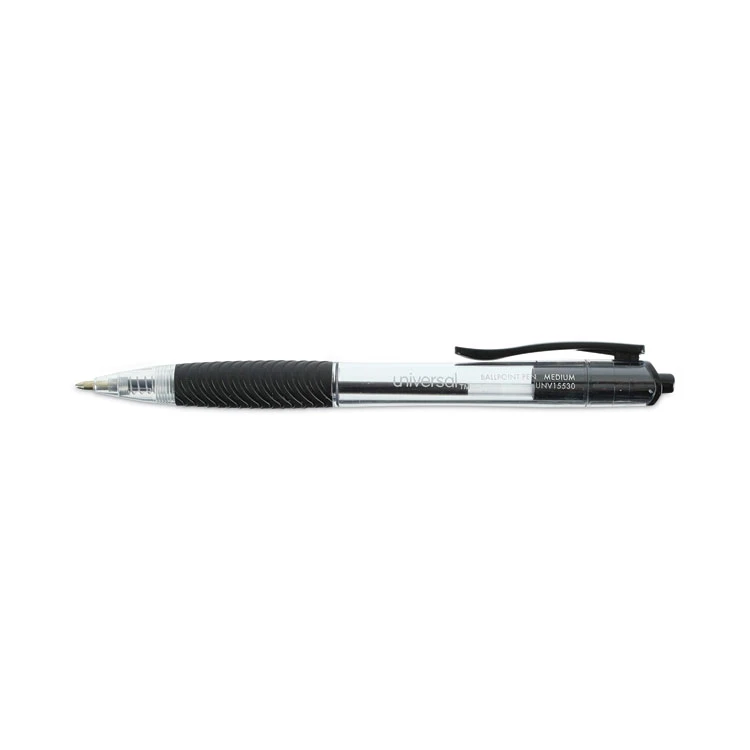 Universal Comfort Grip Ballpoint Pen, Retractable, Medium 1 Mm, Black Ink, Clear Barrel, Dozen