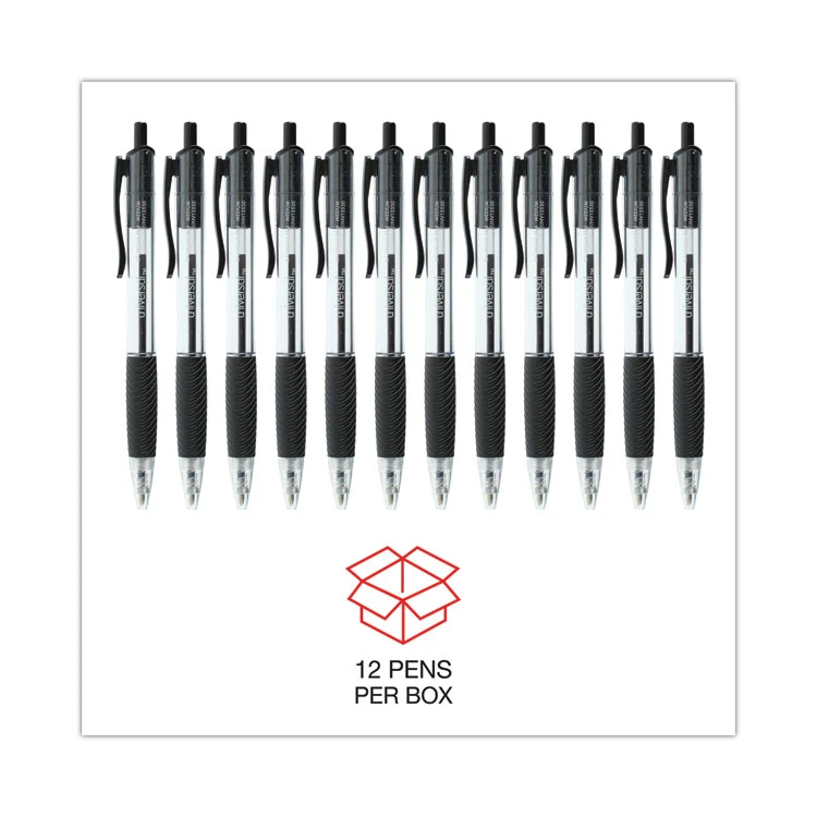 SKU: UNV15530 Category: Pens Tags: Black Ink, Clear Barrel, Comfort Grip Ballpoint Pen, Dozen, Medium 1 mm, Retractable