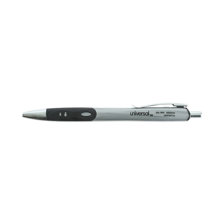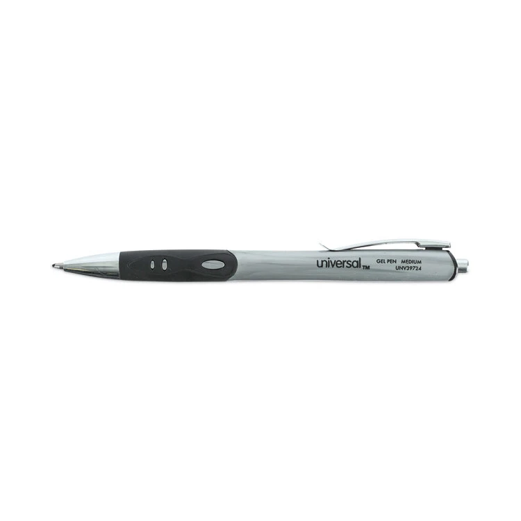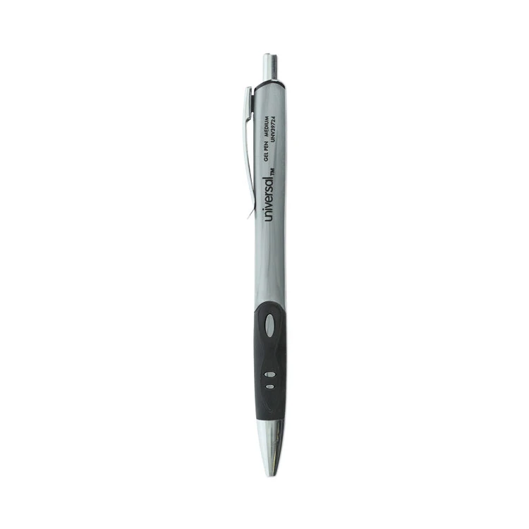 Universal Comfort Grip Gel Pen, Retractable, Medium 0.7 Mm, Black Ink, Silver Barrel, 36/Pack