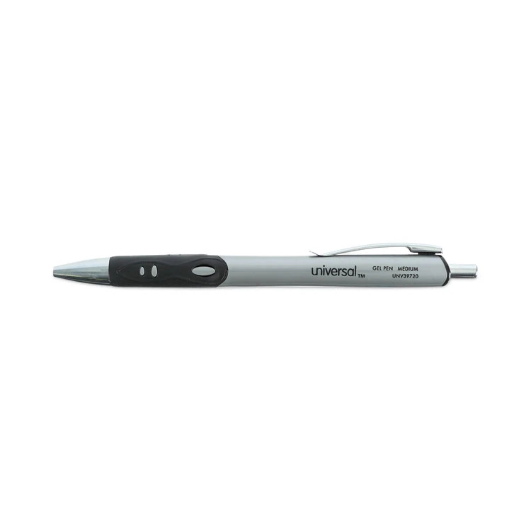 Universal Comfort Grip Gel Pen, Retractable, Medium 0.7 Mm, Black Ink, Silver Barrel, Dozen