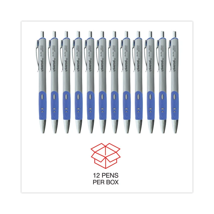 SKU: UNV39721 Category: Pens Tags: Blue Ink, Comfort Grip Gel Pen, Dozen, Medium 0.7 mm, Retractable, Silver Barrel