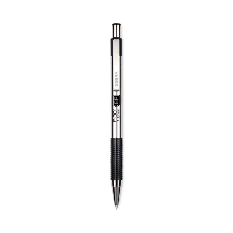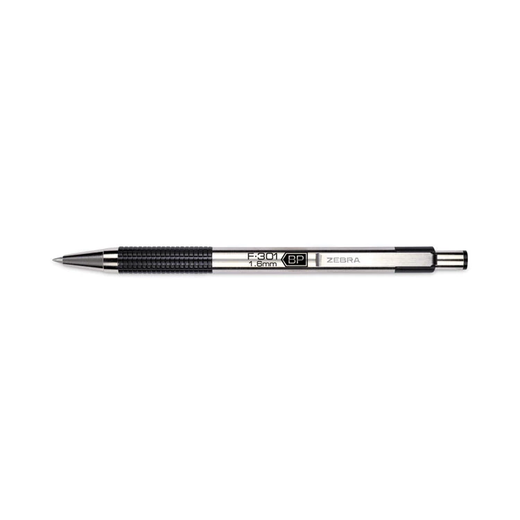 Zebra F-301 Ballpoint Pen, Retractable, Bold 1.6 Mm, Black Ink, Stainless Steel/Black Barrel, 12/Pack