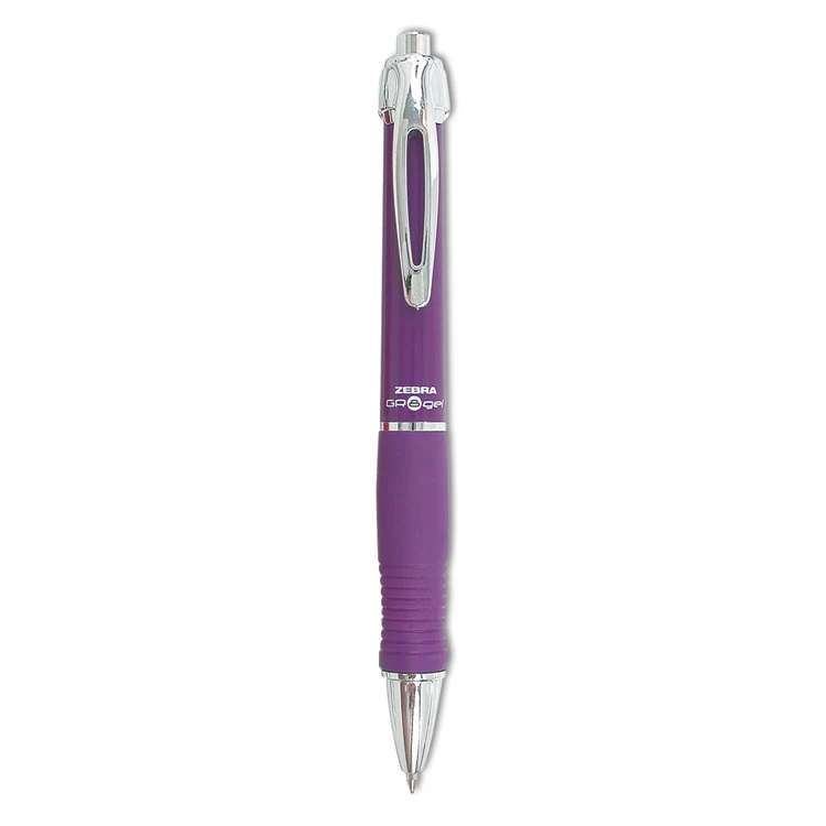 Zebra GR8 Gel Pen, Retractable, Medium 0.7 Mm, Violet Ink, Violet/Silver Barrel, 12/Pack