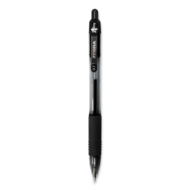 Zebra Z-Grip Ballpoint Pen, Retractable, Medium 0.7 Mm, Black Ink, Black Tinted Barrel, 12/Pack